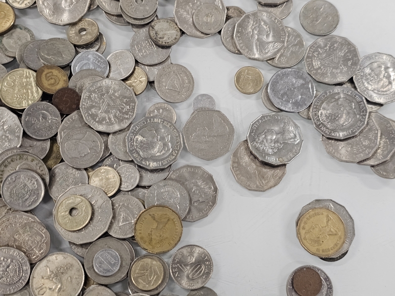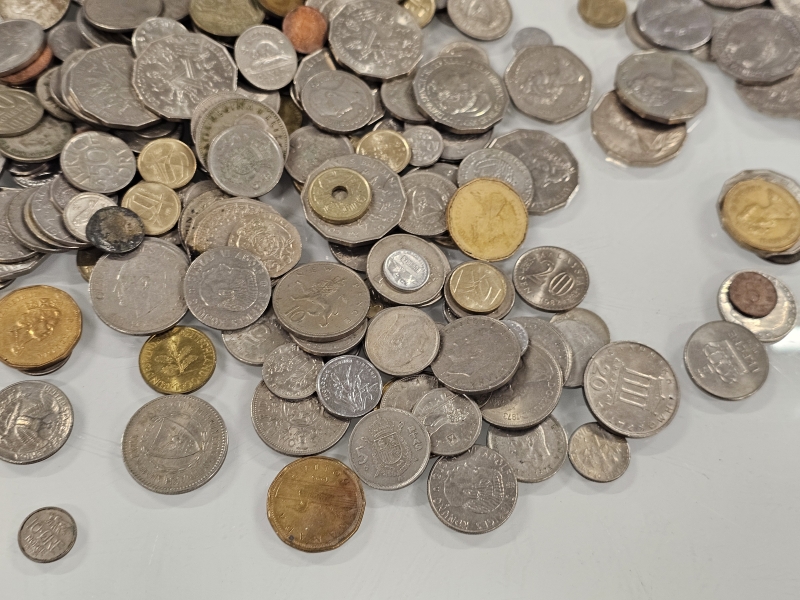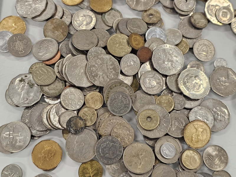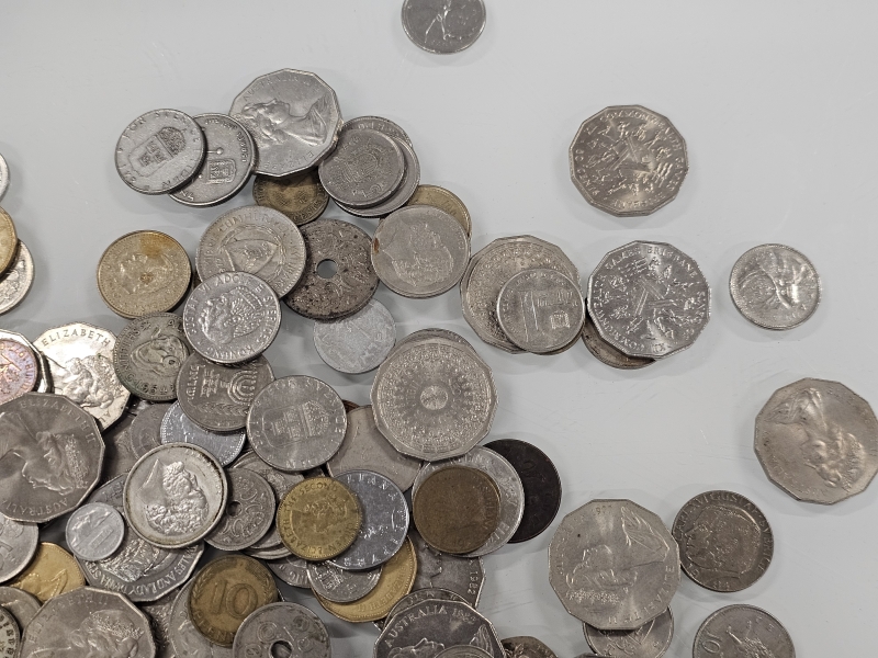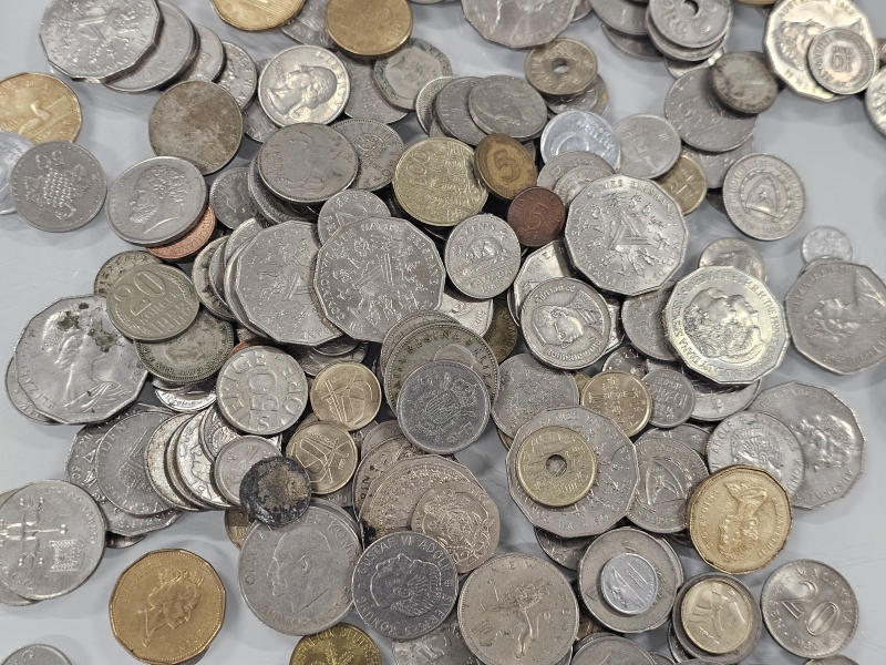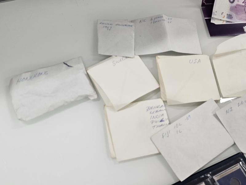#1558 - Iso erä keräilyseteleitä, kolikoita ja vanhoja rahoja eri maista