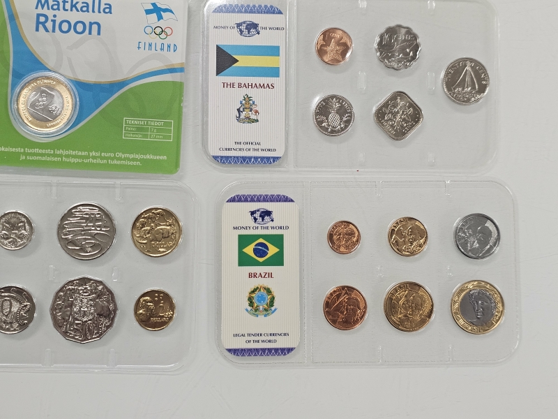 #1559 Erä kolikoita, keräilyrahoja ja eri maiden rahasarjoja