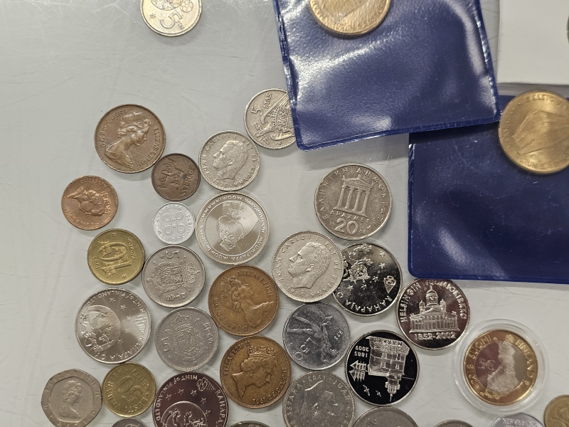 #1559 - Erä kolikoita, keräilyrahoja ja eri maiden rahasarjoja