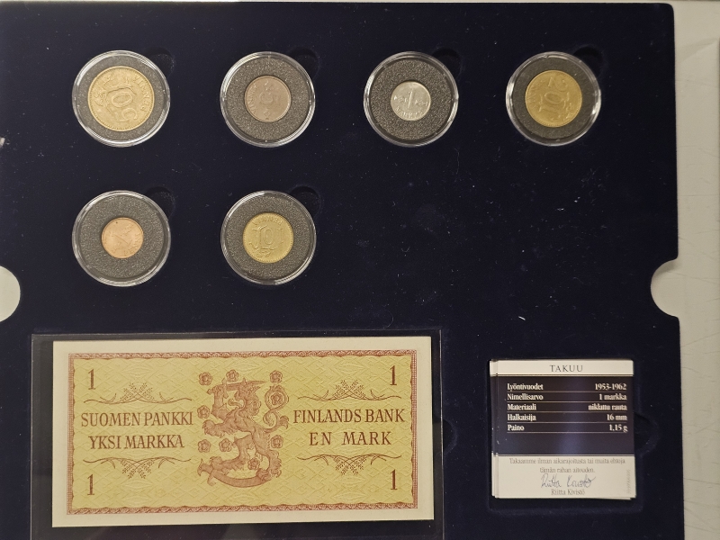#1562 - 2kpl rahasarjoja: Suomen rahauudistus 1963 / Kultaiset jäähyväiset markalle 2001