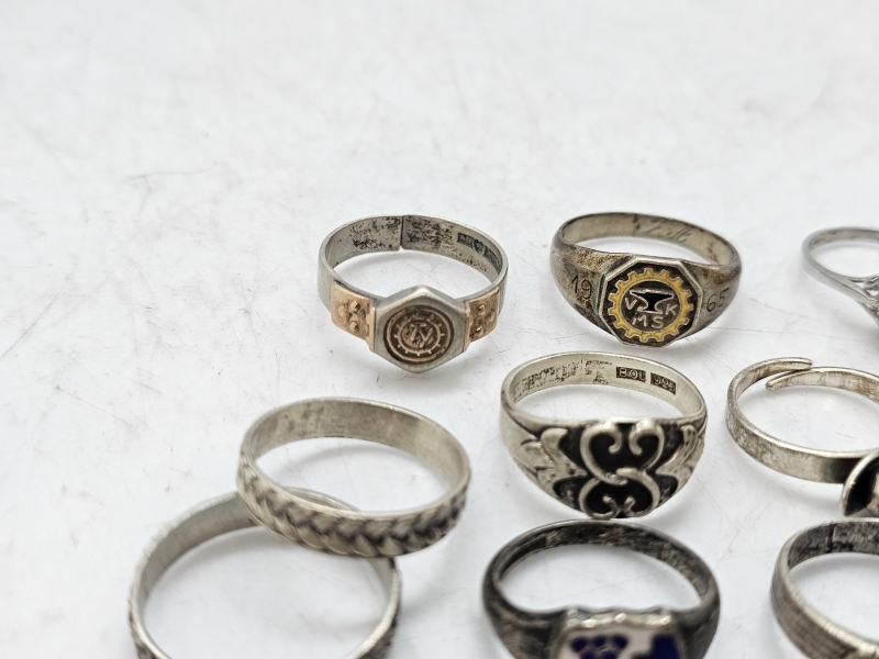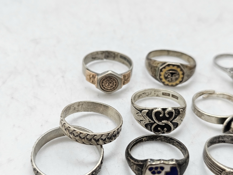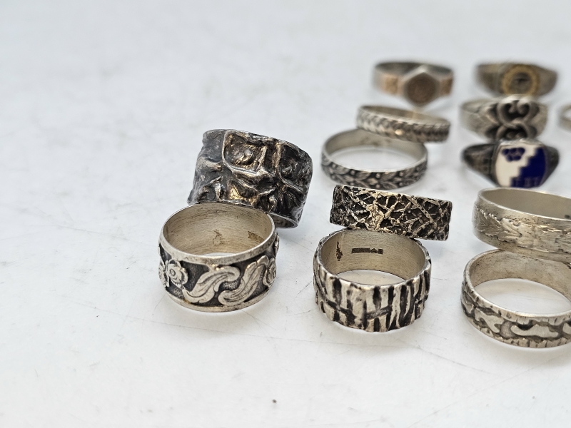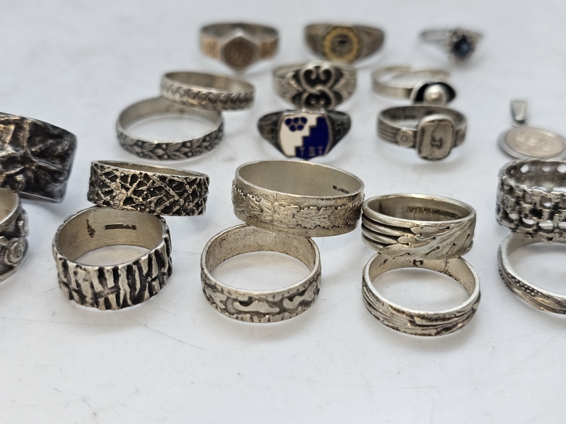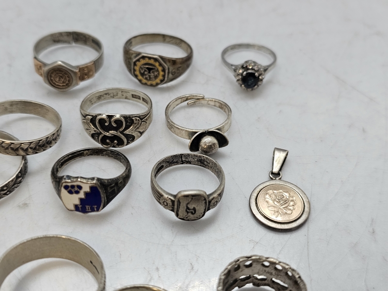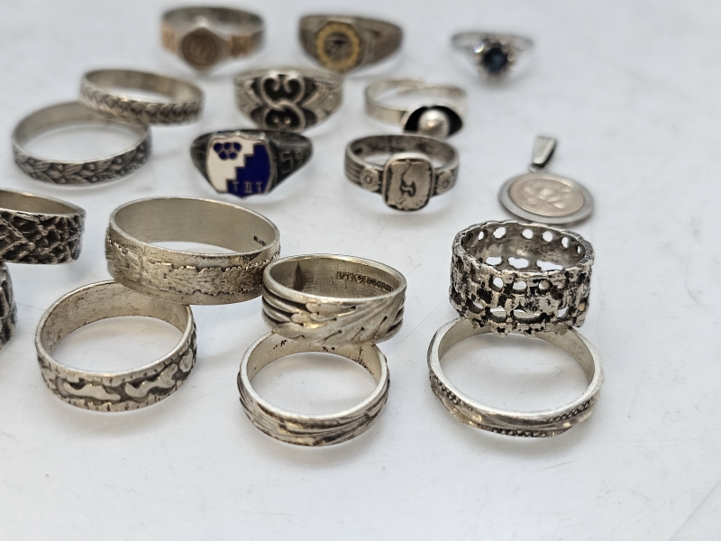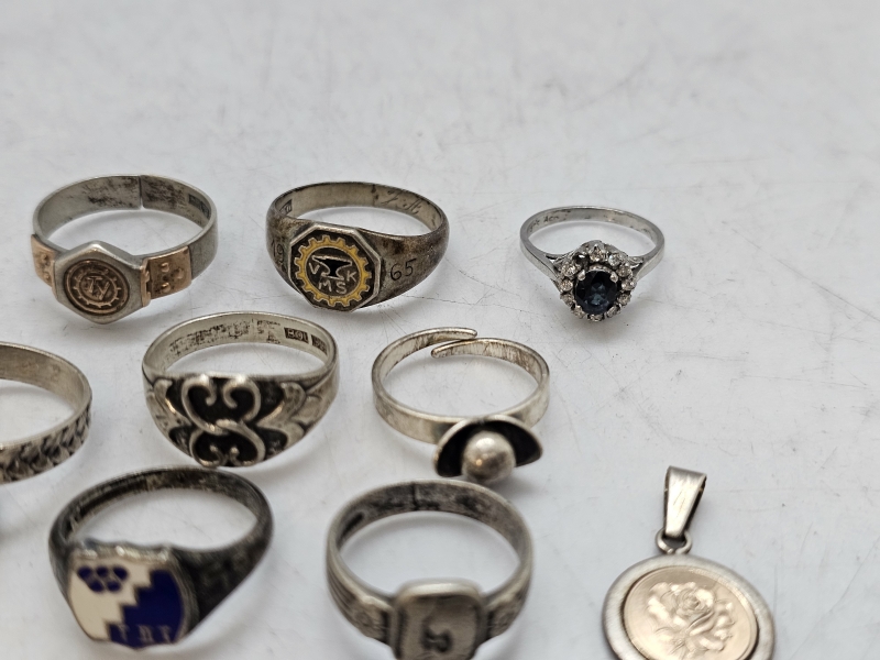 #1557 - Erä hopeasormuksia ja riipus