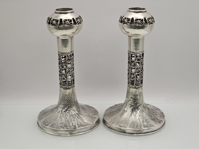 #1567 - 2kpl Pentti Sarpaneva hopeisia kynttilänjalkoja