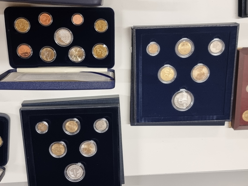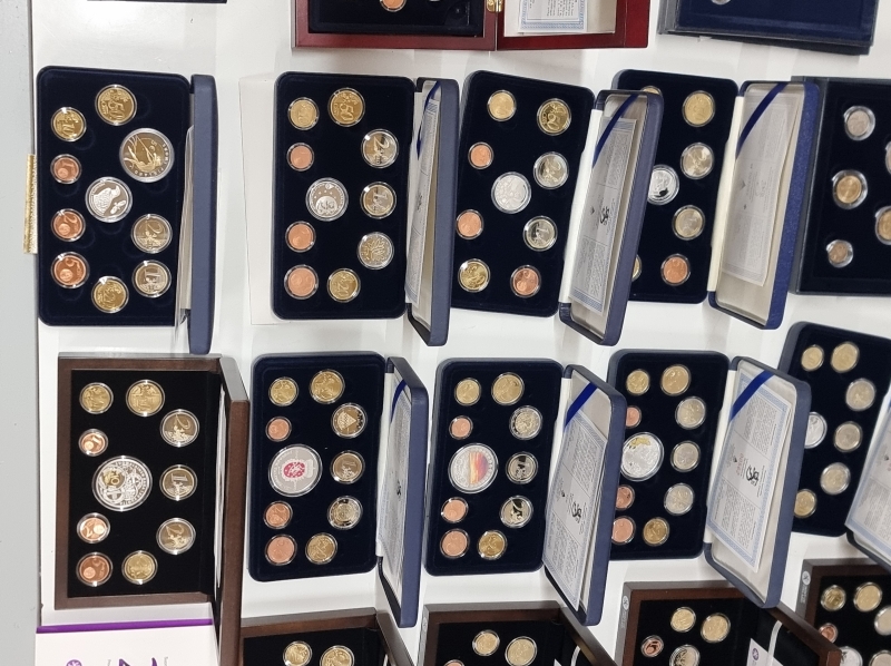 Suuri osa proof-laatuisia. Hopeaa n. 240g ja pitoisuus 925. Nimellisarvo n.120e
