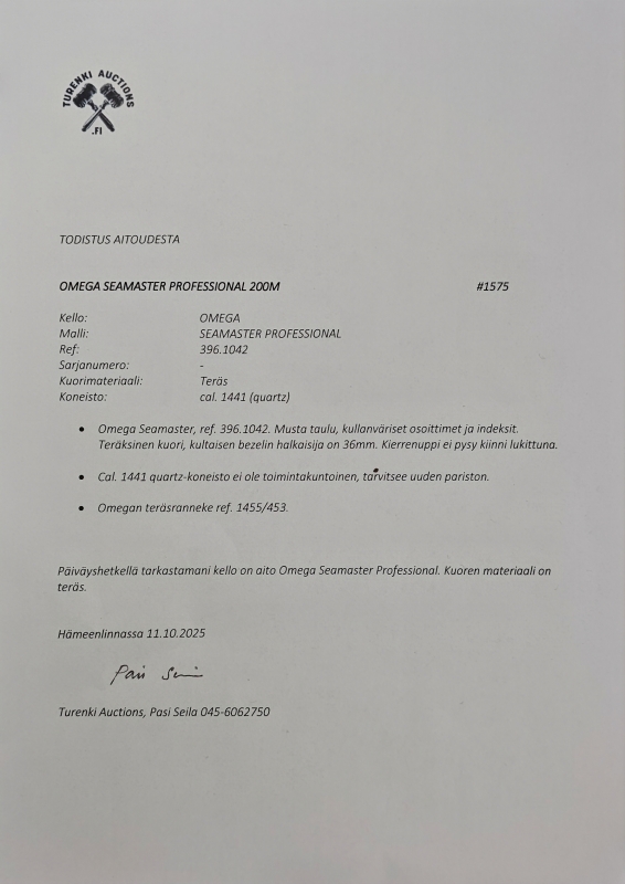 Halkaisija 36mm. Kulumaa. Mukana aitoustodistus. Ref: 396.1042