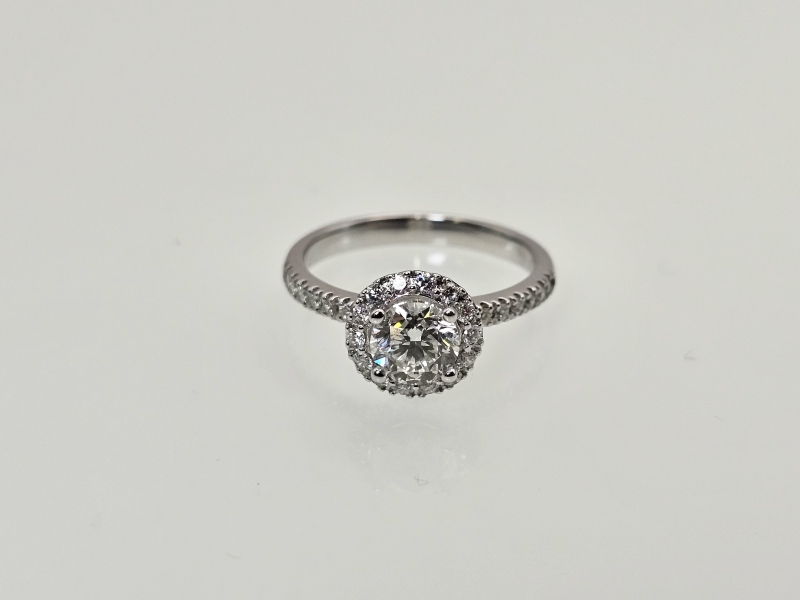 #1579 18k valkokultainen sormus timanteilla joista isoin 1,01ct Wesselton H timantilla, 3,65g
