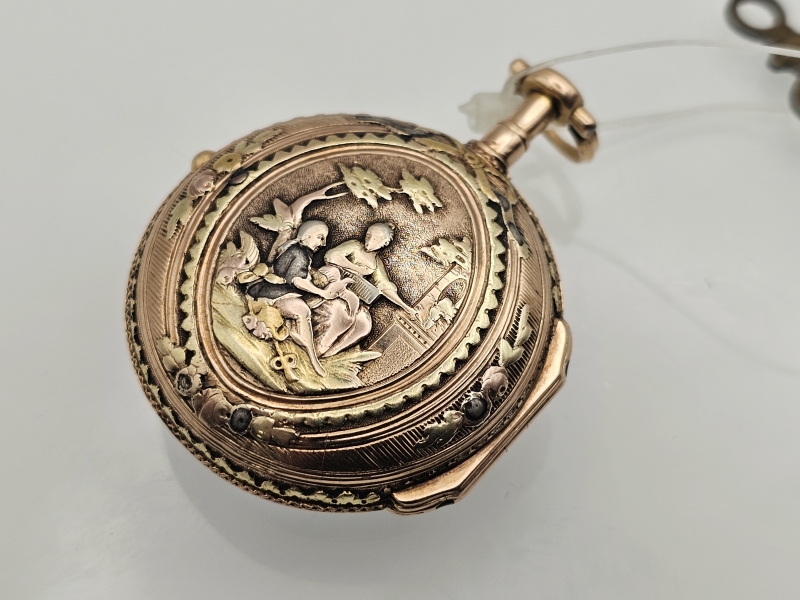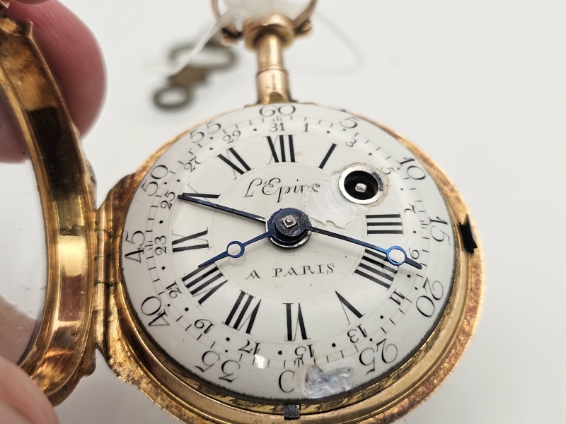 #1585 18k monivärikultainen kello 1700-l. loppu, L'Epine, A Paris, 44,95g