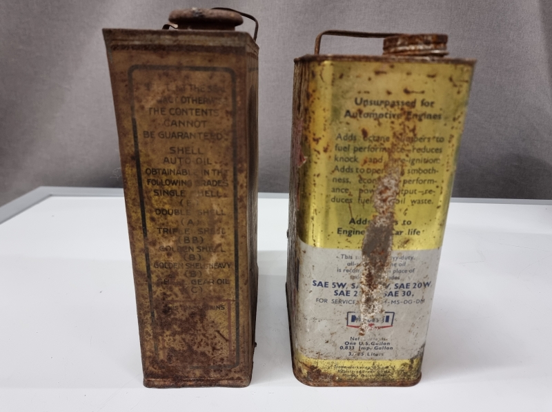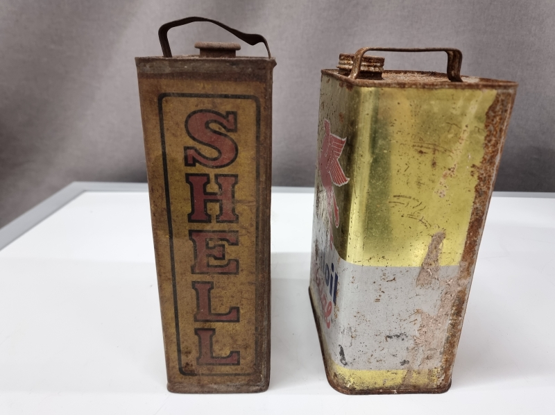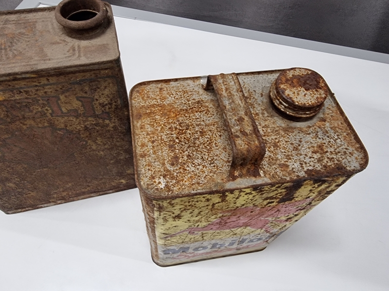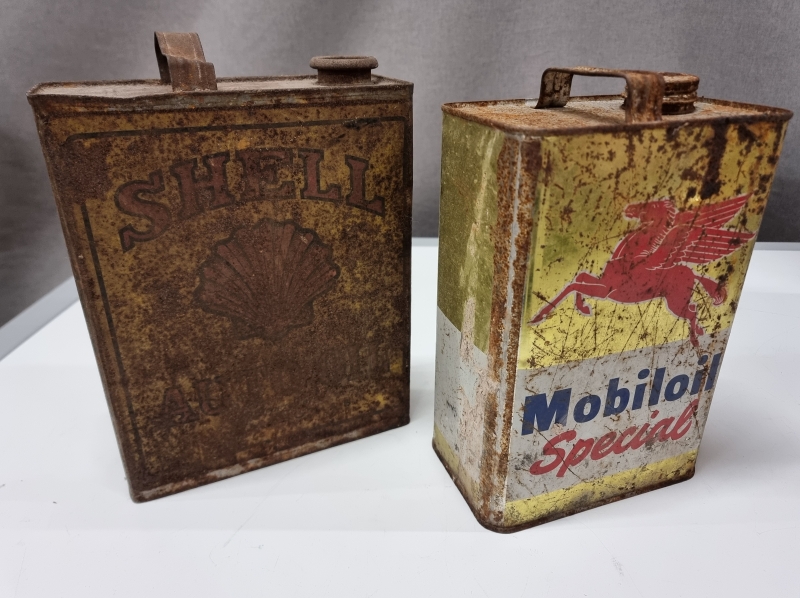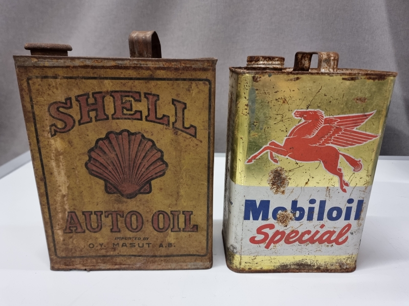 #2101 - 2kpl vanhoja öljykanistereita, Shell ja Mobiloil