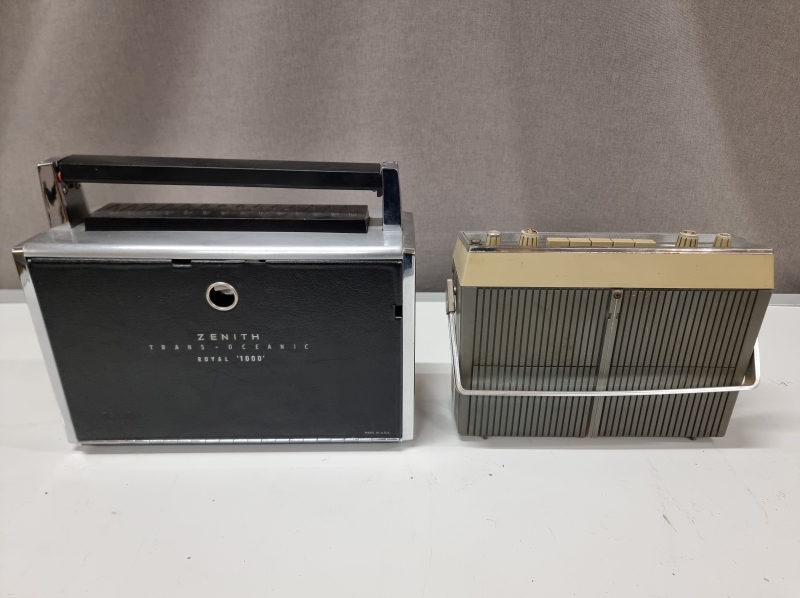 #2468 2kpl vanhoja paristokäyttöisiä radioita, Zenith Trans-Oceanic Royal 1000 maailmanradio ja Blaupunkt Derby