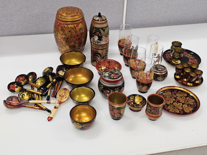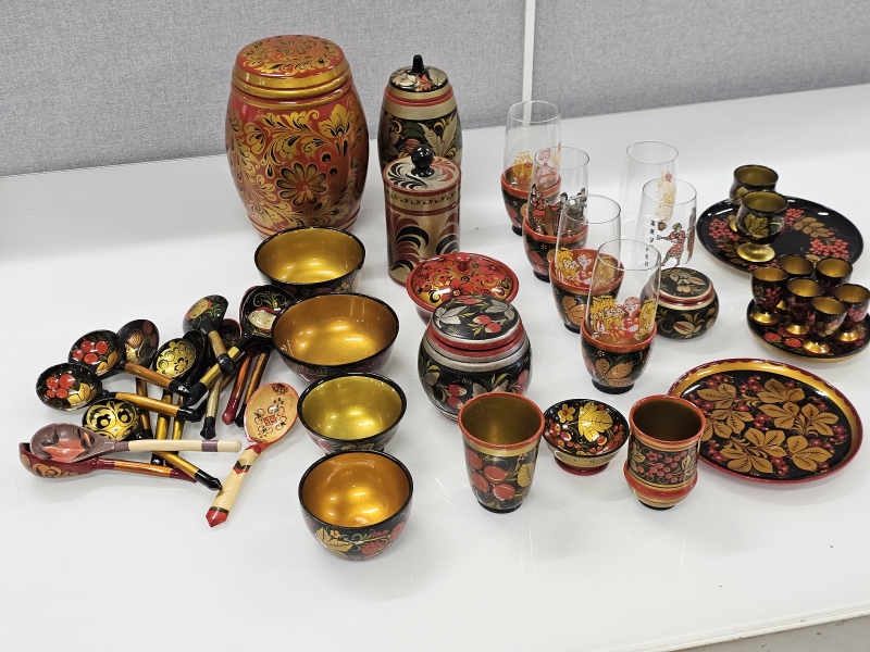 #2108 - Erä neuvostoliittolaisia maalattuja puuesineitä