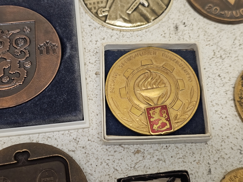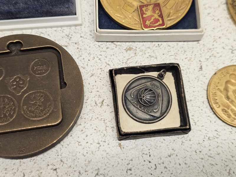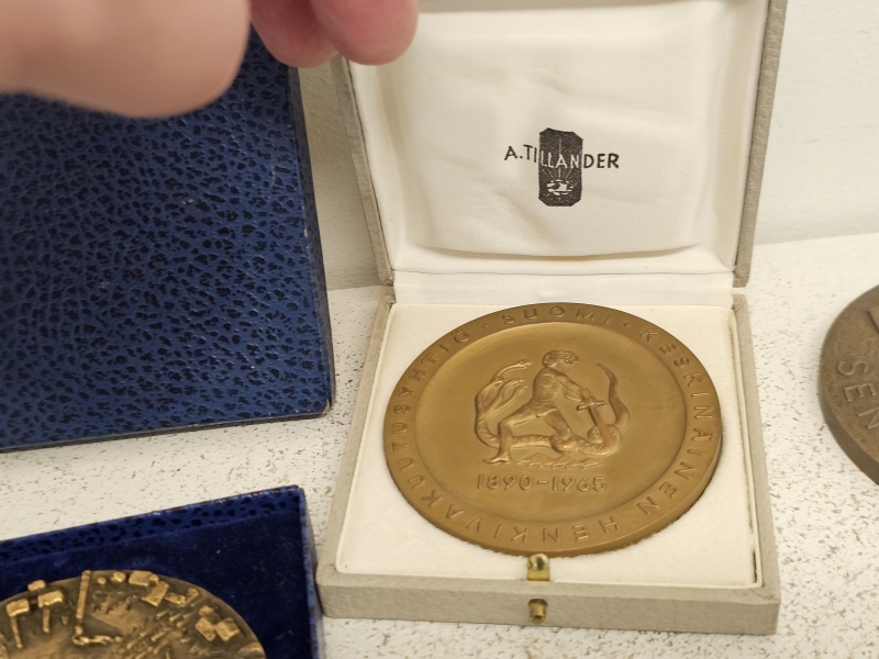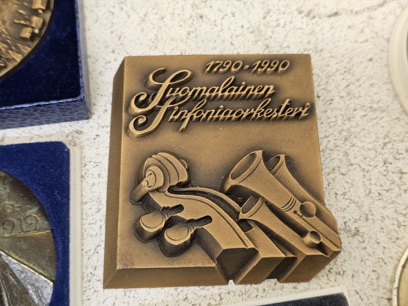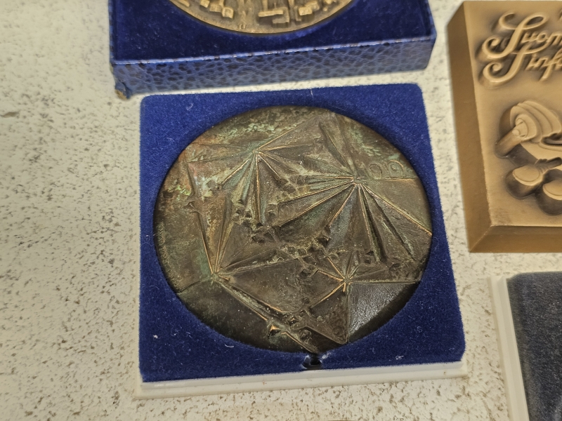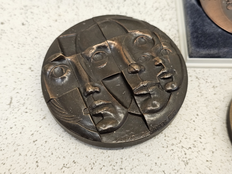 #2036 Erä pronssisia pöytämitaleita ym.: Mm. Kauko Räsänen, Wäinö Aaltonen