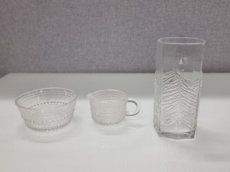 #607 Erä kotimaista lasia mm. Kastehelmi, Kuusimaljakko