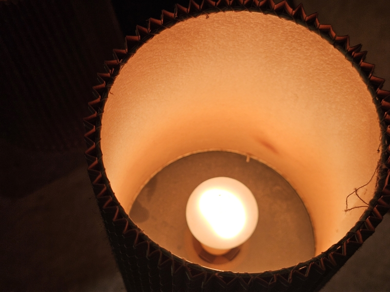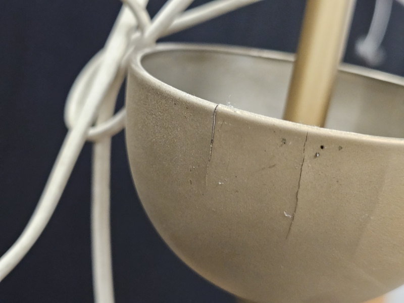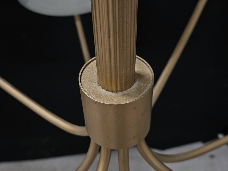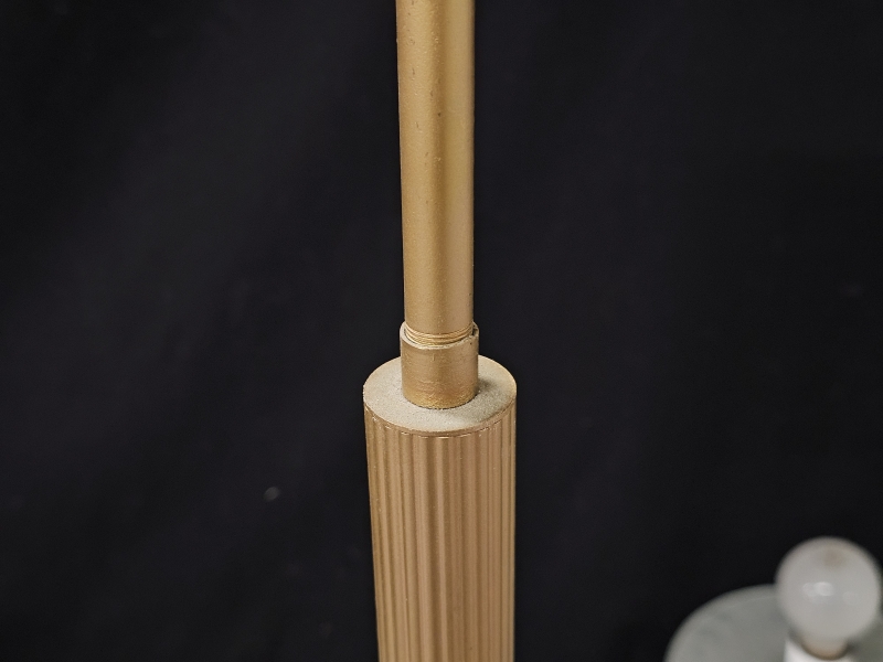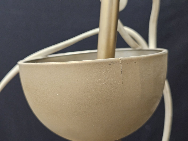 Varjostimet ja aluslasit alkuperäiset. Korkeus noin 124cm, halkaisija noin 107cm, varjostimen korkeus 30,5cm. Varjostimissa pientä kulumaa, yleisilme hyvä