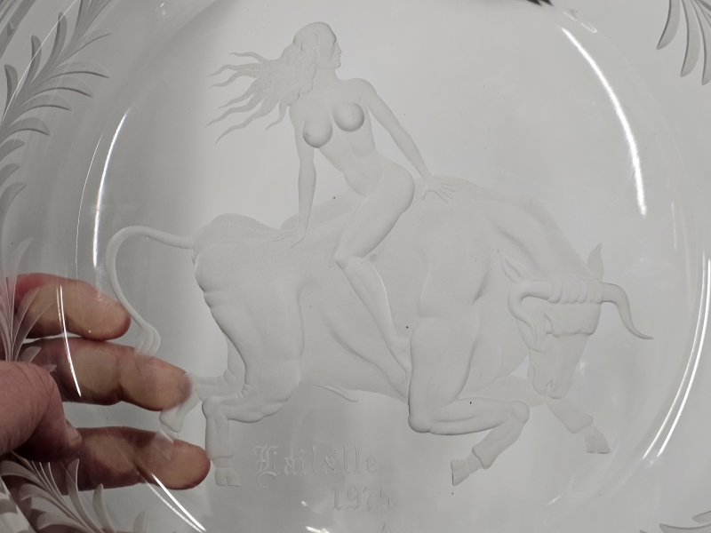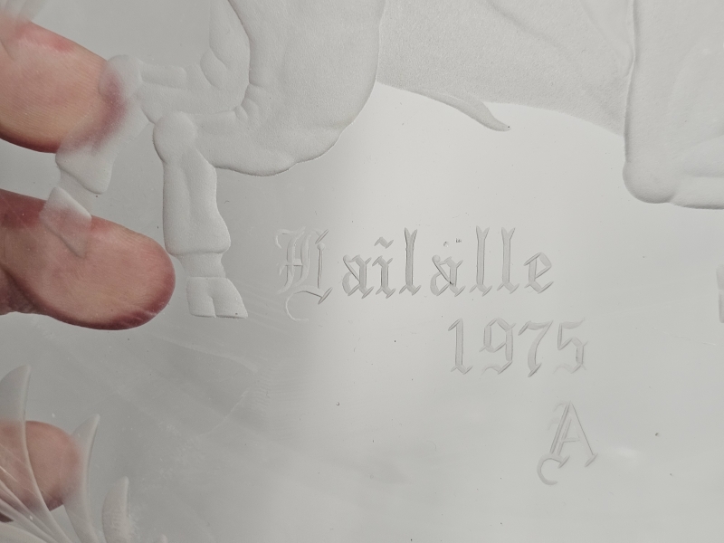 #118 Matti Okkolin, hienosti kaiverrettu taidelasimalja v. 1975
