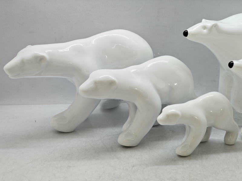 #120 - Jääkarhuja: 2kpl Tarmo Maaronen Bianco Blu lasisia & 3kpl Porsgrund posliinisia