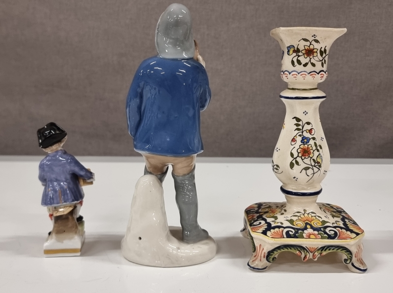 #636 2kpl posliinipatsaita ja keraaminen kynttilänjalka, mm. Rouen Fait Main