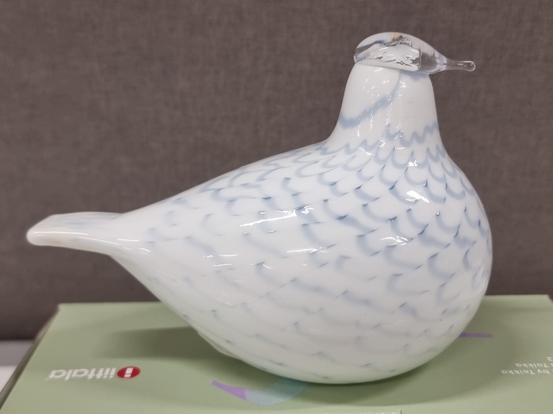 #145 Oiva Toikka, taidelasilintu Snow grouse, Finn Fest 2020 + laatikko