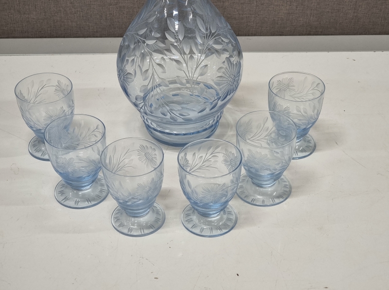 #323 - Kotimainen hiottu karahvi ja 6kpl laseja