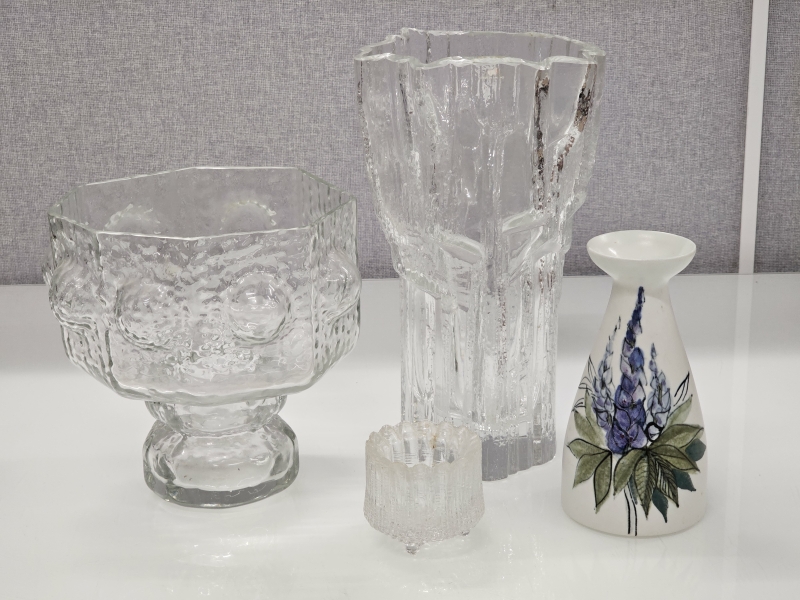 #277 - Arabia HLA maljakko & 3kpl lasiesineitä [mm. Nanny Still Fontana]