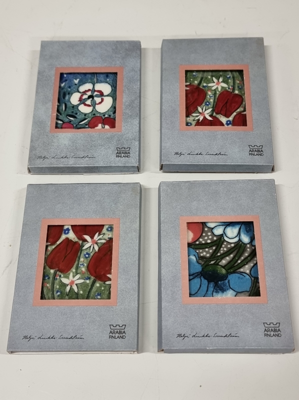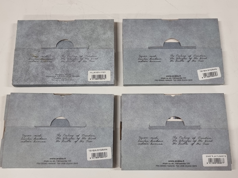 #709 4kpl Arabia, Heljä Liukko-Sundström seinätauluja alkuperäispakkauksissa.