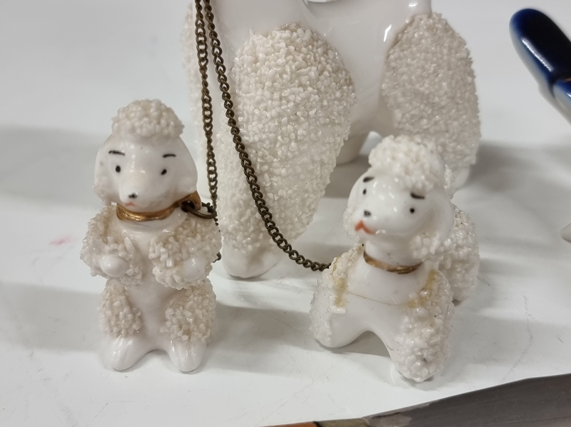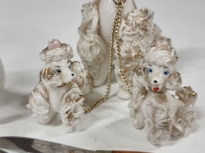 #710 - 2kpl koirafiguureja, Lomonosov-sirotin ja 6kpl Iisakki Järvenpää hedelmäveitsiä.