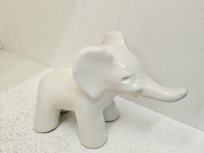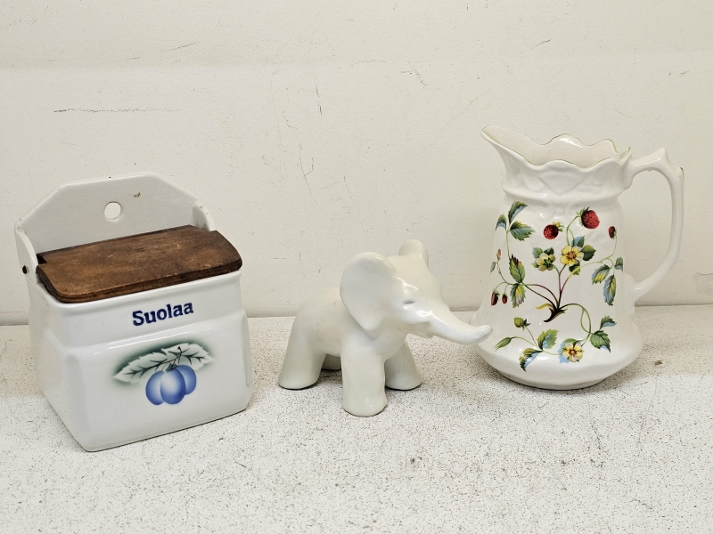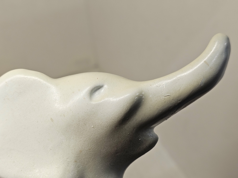 Norsu jälkeenpäin maalattu, kannun lasitteessa krakeloitumaa