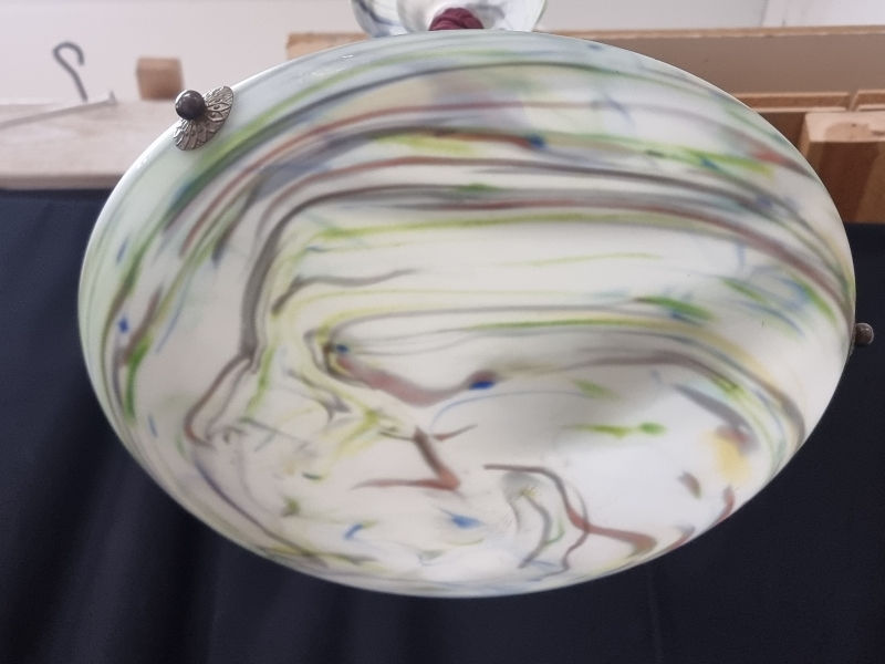 Halkaisija 36cm. Kattokuvussa puutteita ja liimaus.