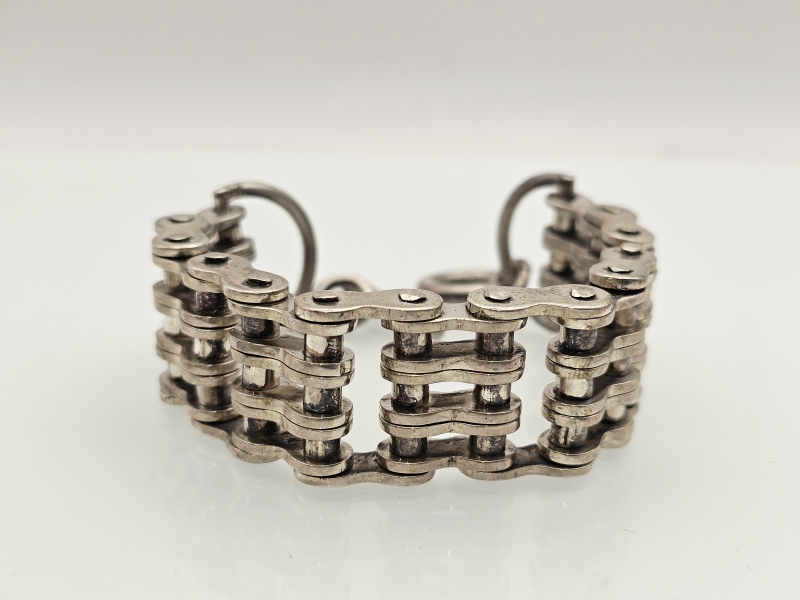 #1084 - Hopeinen "pyöränketju" rannekoru
