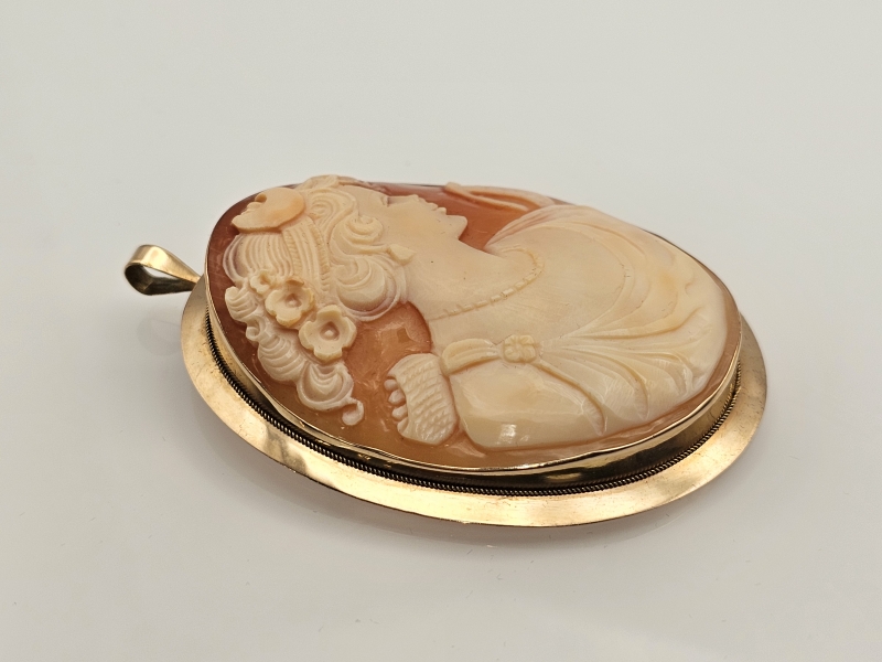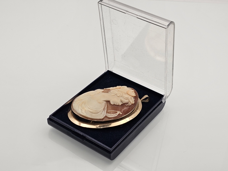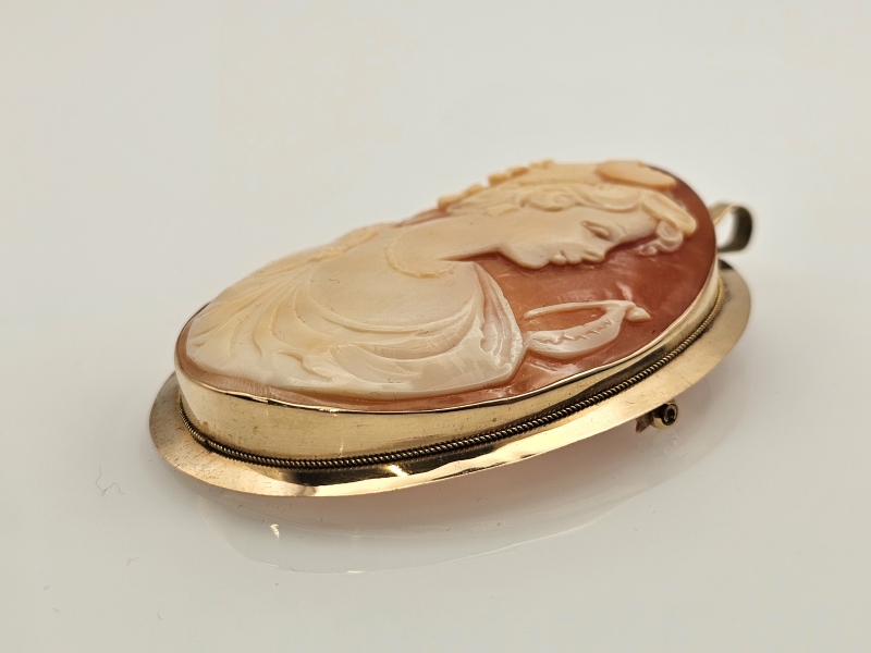 #1104 - 14k kultainen iso camee rintaneula / riipus, 16,32g