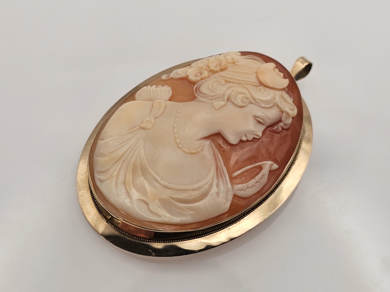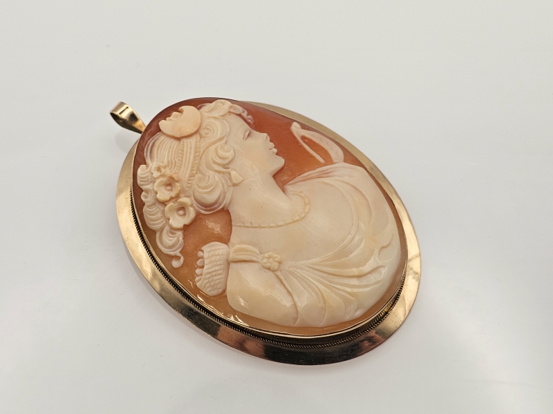 #1104 14k kultainen iso camee rintaneula / riipus, 16,32g