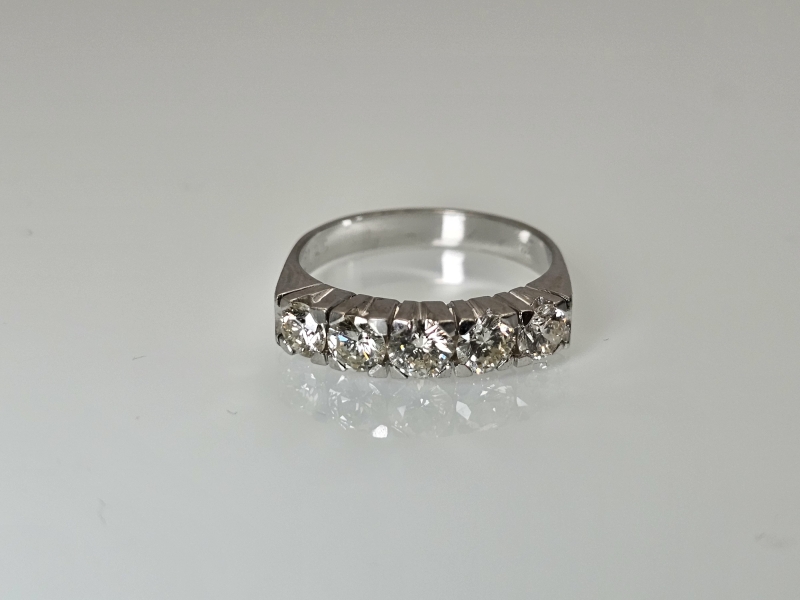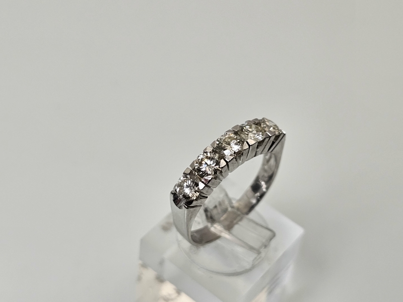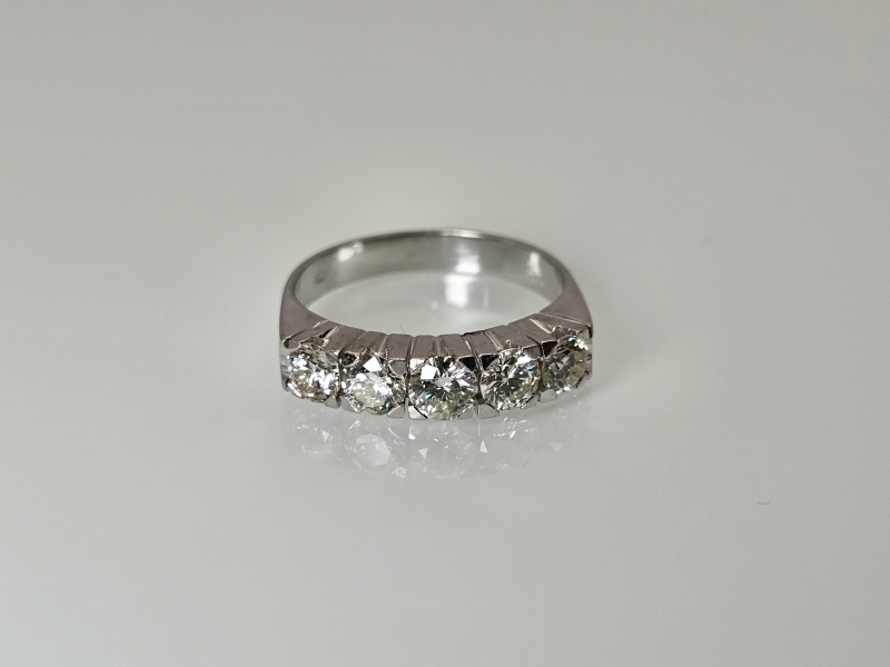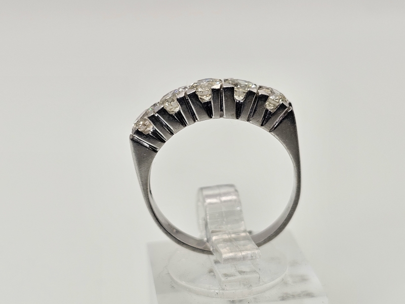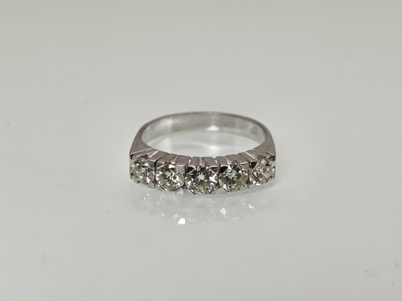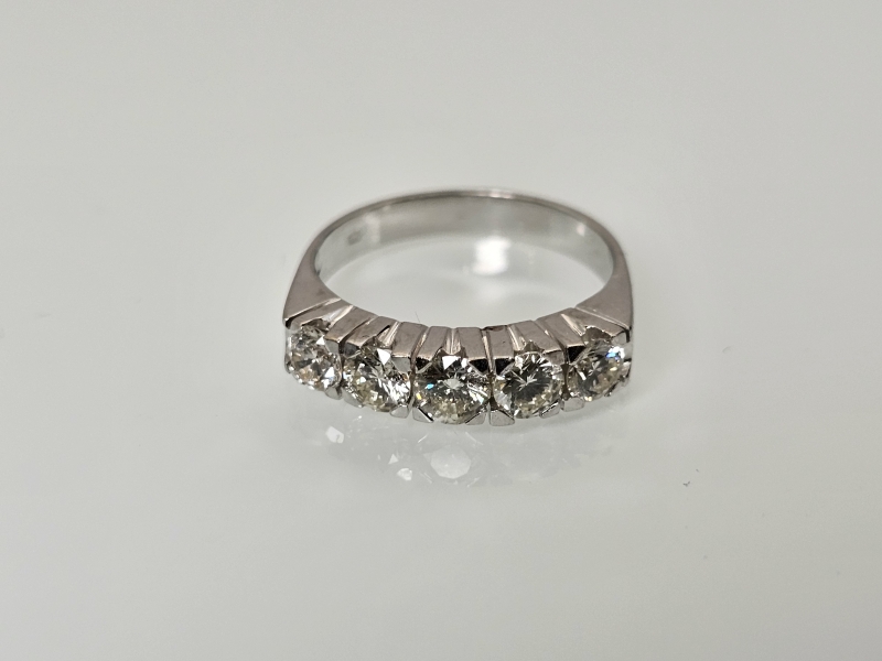 #1109 - 14k valkokultainen sormus viidellä timantilla [yhteensä 1,25ct], 3,65g