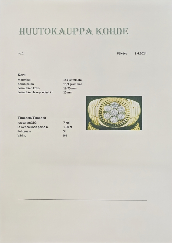 #1149 14k kultainen sormus 7 timantilla [yhteensä 1,00ct], 15,95g