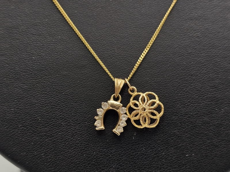 #1115 - 14k kultainen kaulaketju + 2kpl riipuksia, 4,4g