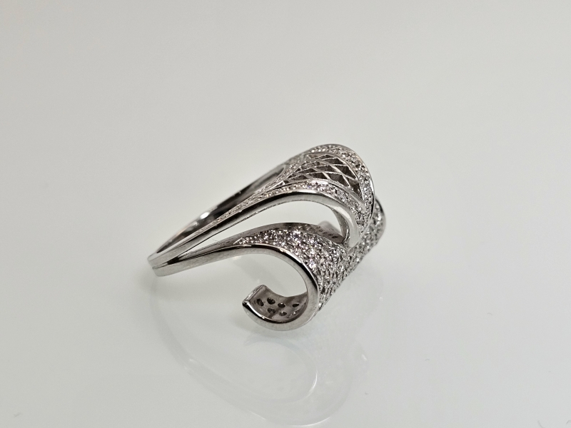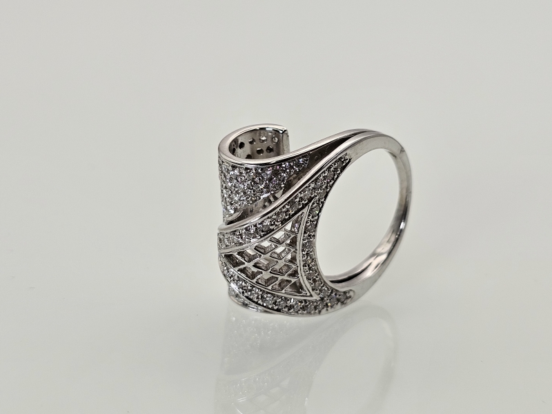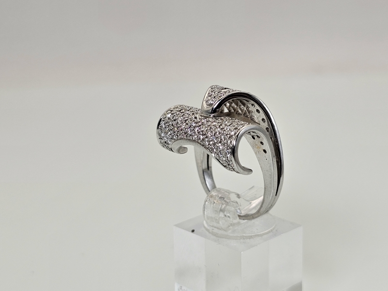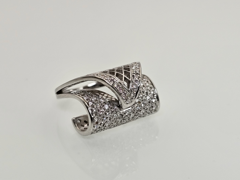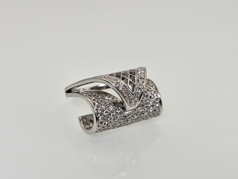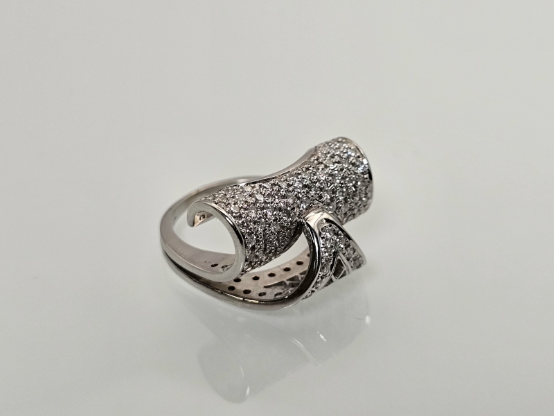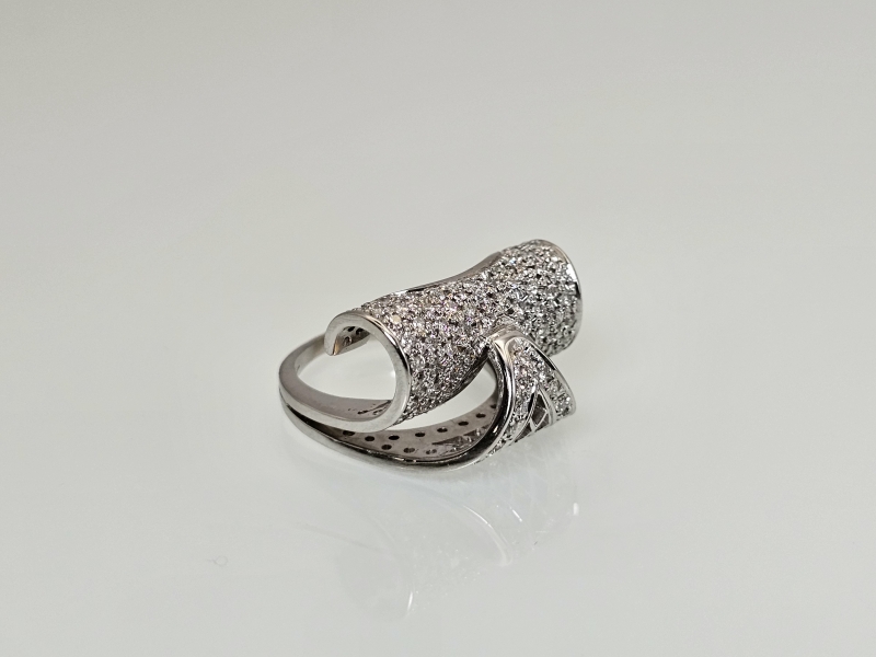 #1124 18k valkokultainen näyttävä sormus 100 timantilla [yht. 1,20ct], 12,71g