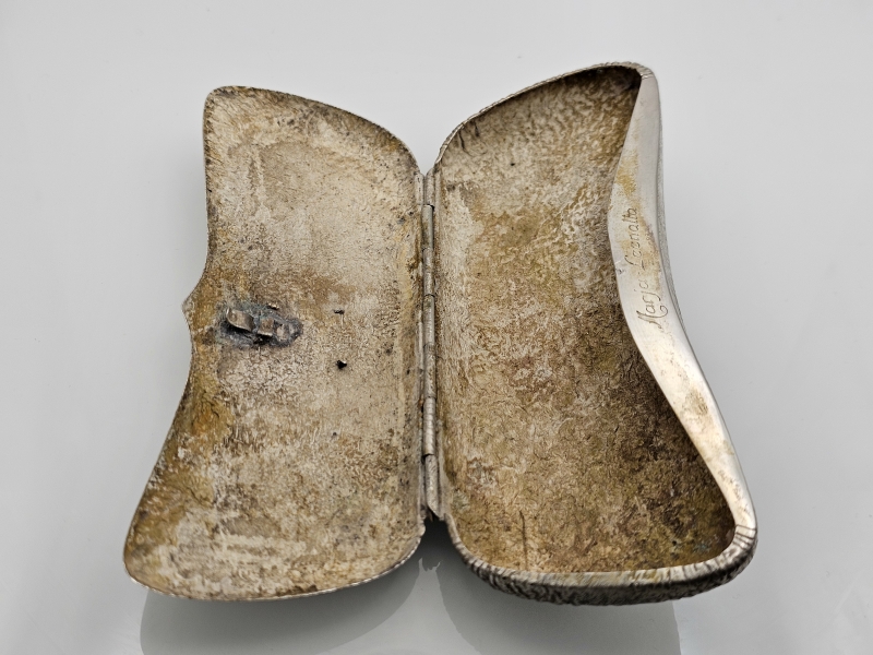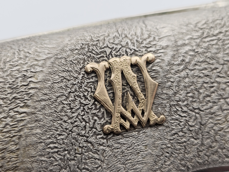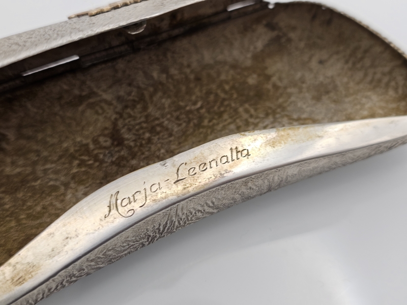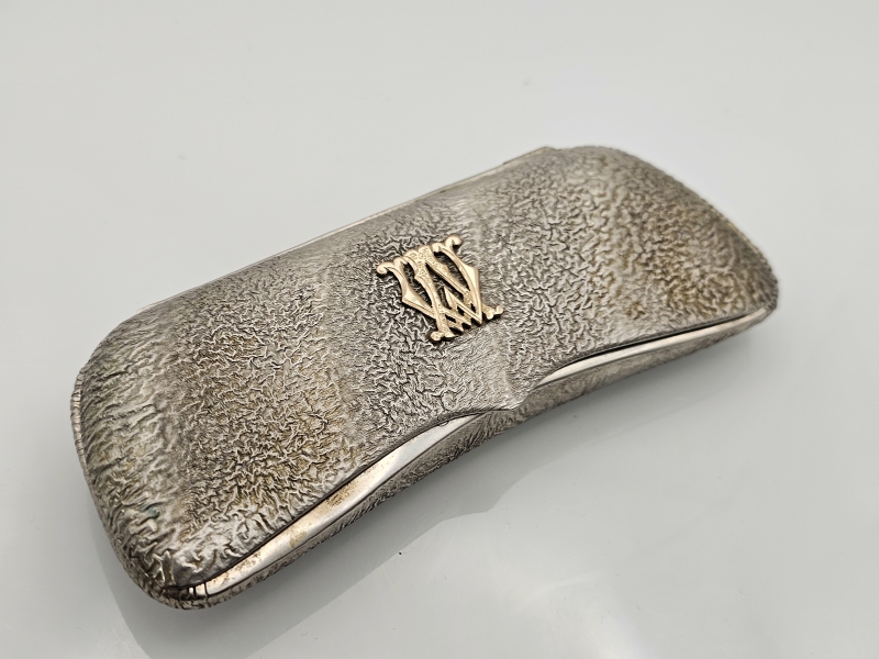 #1044 - Hopeinen silmälasikotelo kultaisella monogrammilla