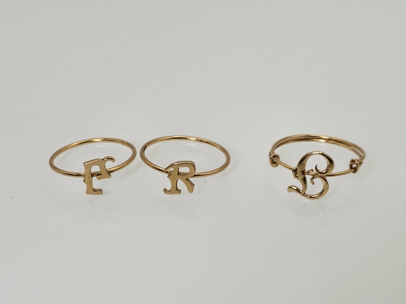#1140 3kpl 14k kultaisia kirjainsormuksia, 2,84g
