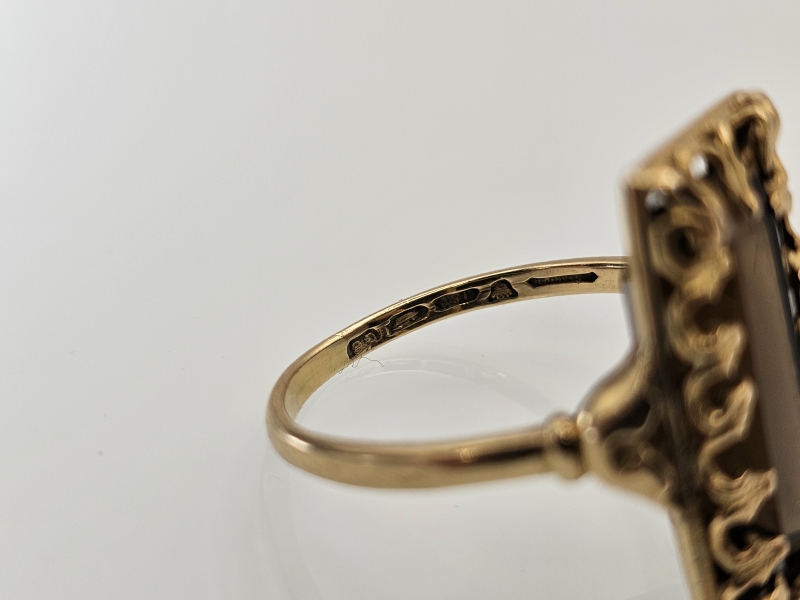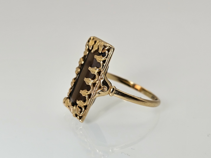 #1154 - 18k kultainen sormus savukvartsilla v.1936, 5,5g