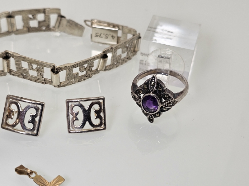 #1158 Erä hopeakoruja + 14k kultainen risti [0,58g]