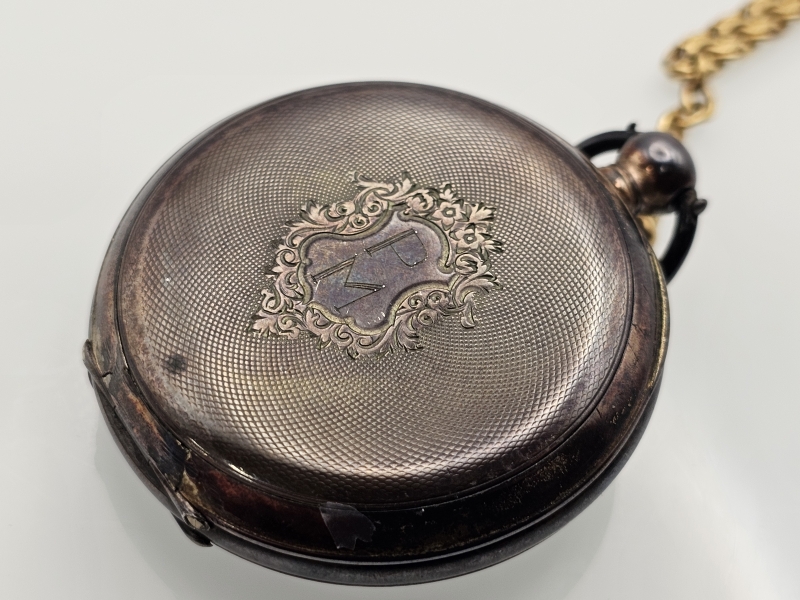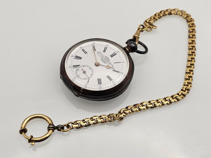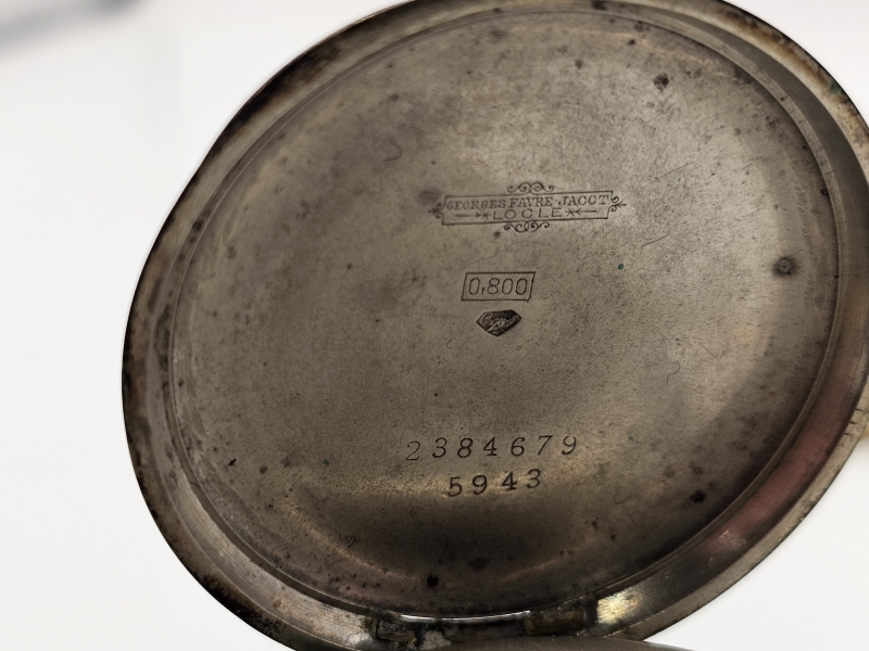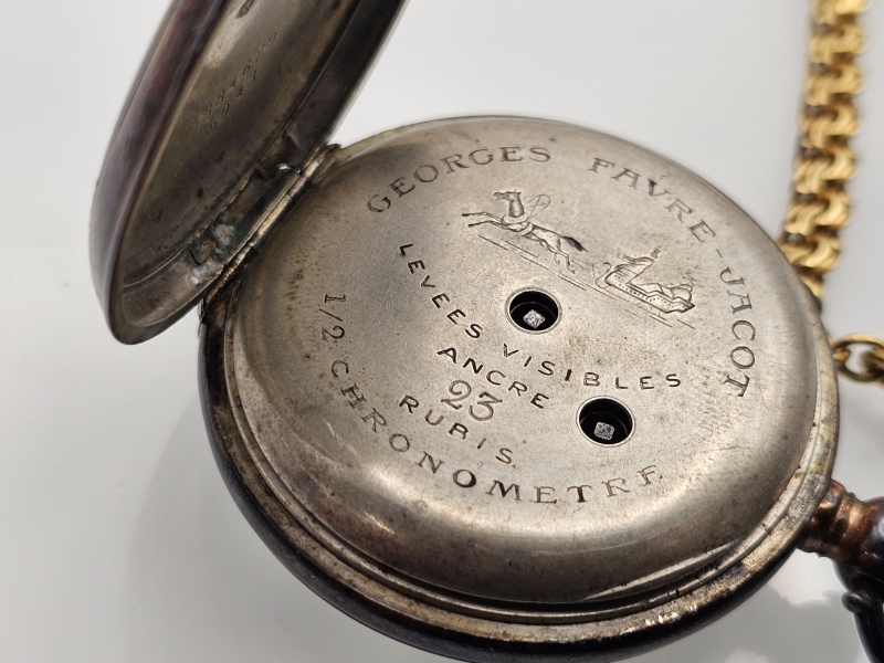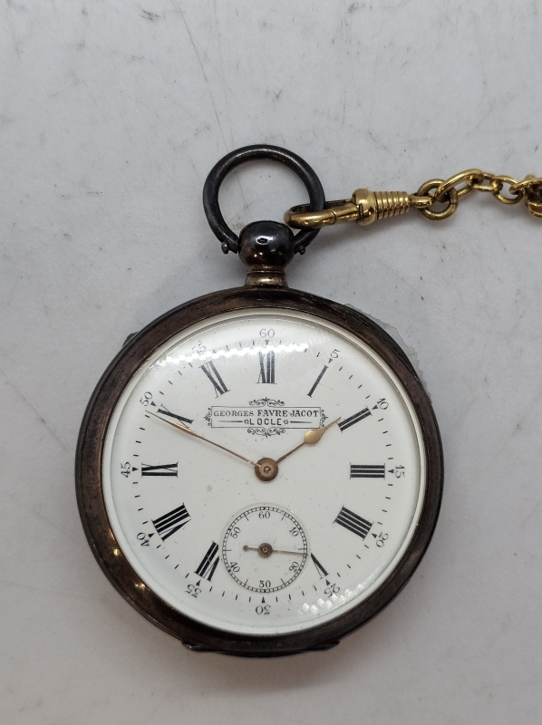 #1161 - Hopeinen avainvetoinen taskukello, Georges Favre-Jacot, Locle + kullatut perät