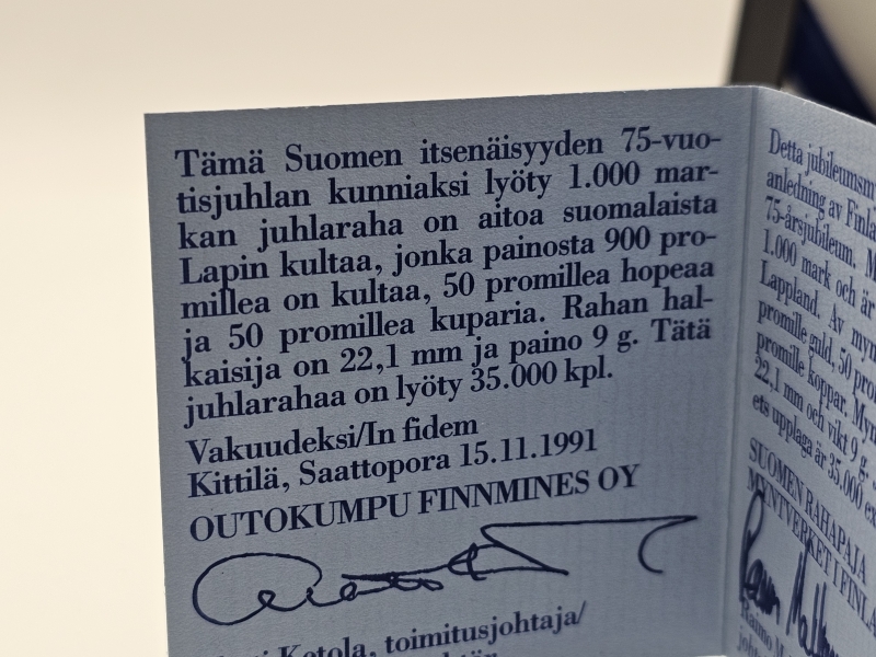#1035 - Kultakolikko: Itsenäisyyden 75v juhlaraha, 9g