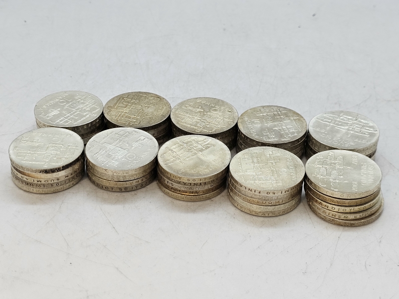 #1174 50kpl hopeisia juhlarahoja: 10mk Itsenäinen Suomi 50v