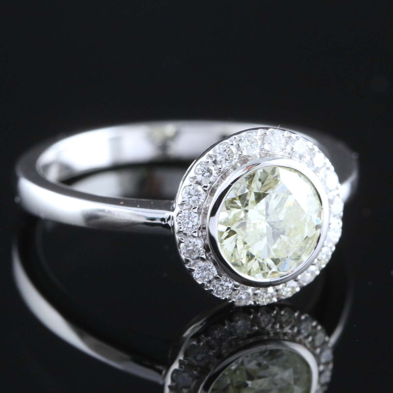 #1180 18k valkokultainen sormus timanteilla joista suurin 1,08ct, 3,46g