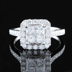 #1202 14k valkokultainen käyttämätön sormus 84 timantilla [yht. 2,60ct], 9,19g