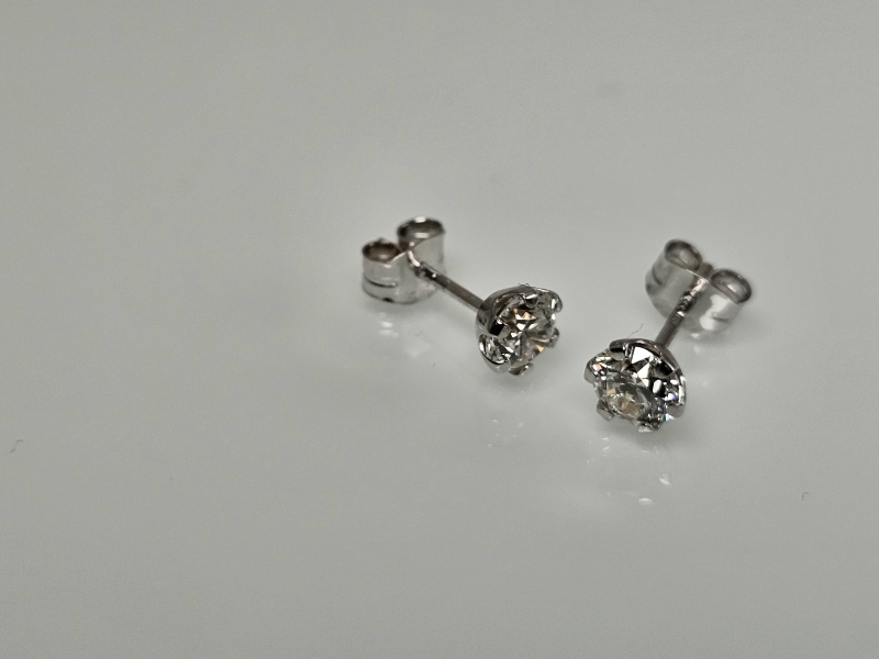 #1284 14k valkokultaiset korvakorut joissa molemmissa 0,40ct timantit + IGI -todistukset, 0,67g