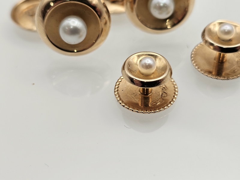 #1184 Kaksi paria 14k kultaisia kalvosinnappeja helmillä, 7,5g