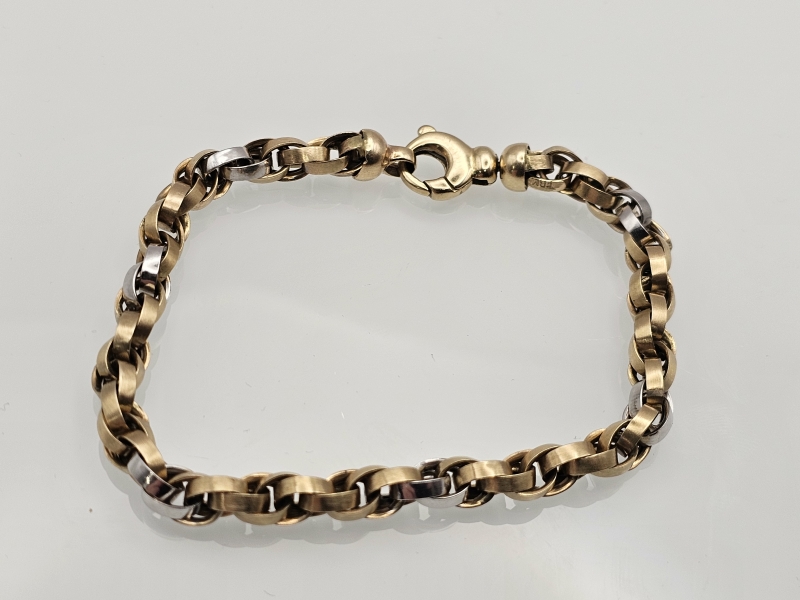 #1186 - 14k kelta- / valkokultainen rannekoru, 13,15g