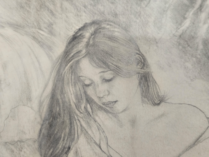 Piirretty kuultopaperille. Kehyksineen 60cm x 46,5cm