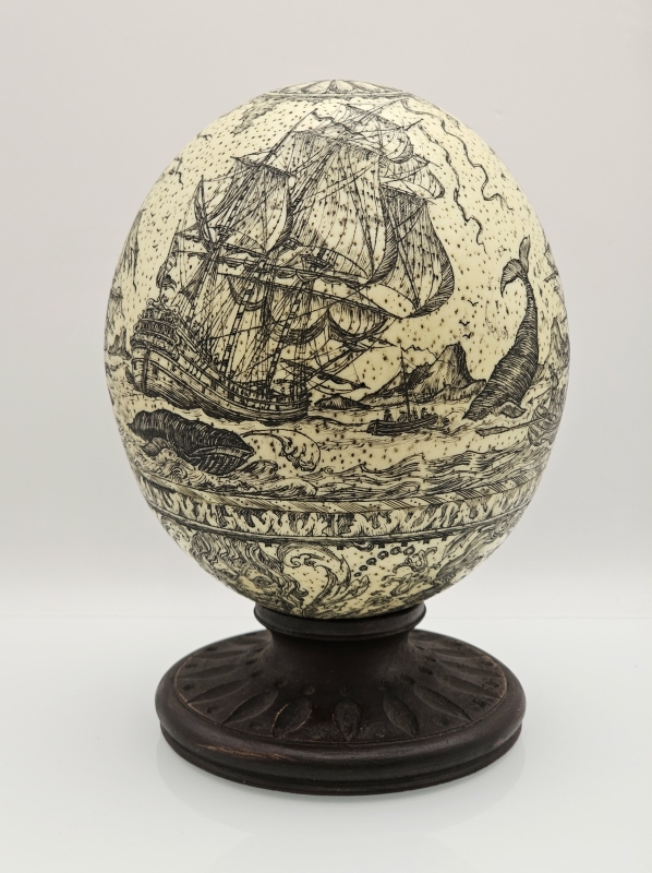 #2006 - Taidokkaasti kaiverruskoristeltu strutsin muna jalustalla