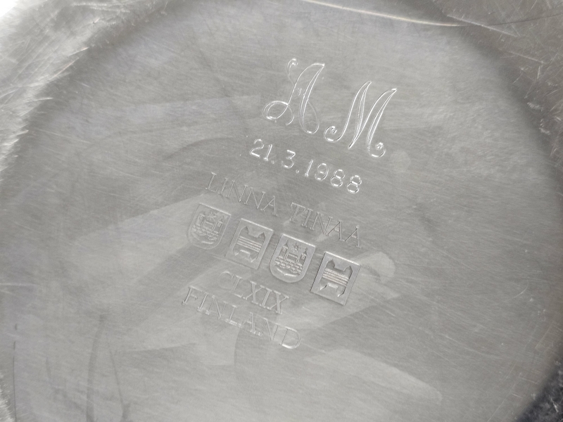 Hopean paino 22g. Wirkkalan maljan halkaisija 28,5cm