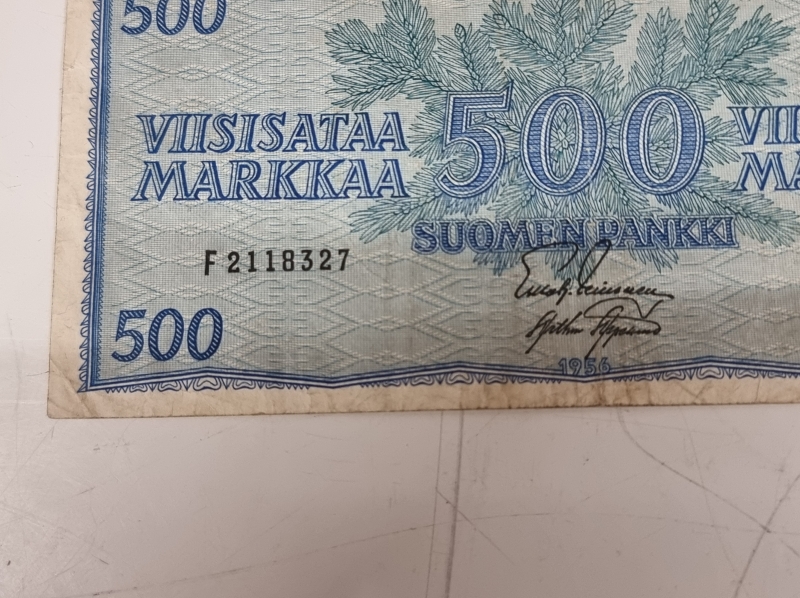 #1918 4kpl suomalaisia seteleitä: 500mk 1956, 1000mk 1955 ja 2kpl 100mk 1986