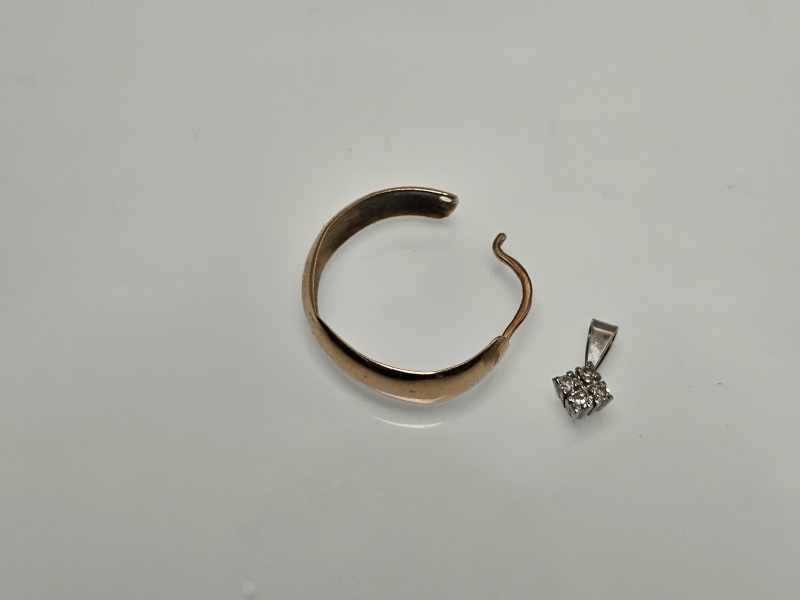 #1243 14k kultainen korvakoru & 14k valkokultainen riipus timanteilla, 1g